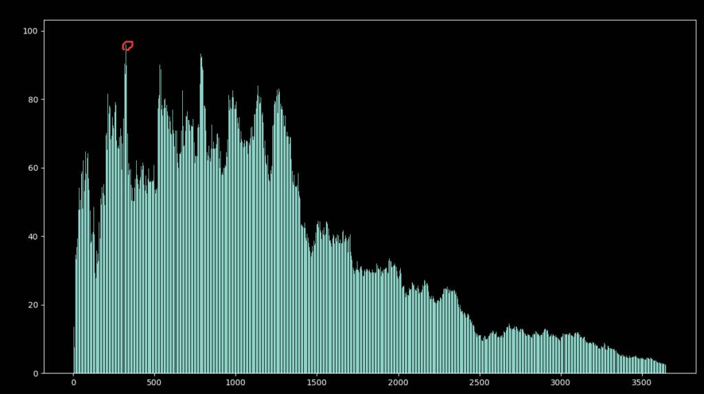 使用日k线,收益最高的均线长度是318,按照美股一年252个交易日计算,大约相当于1.247年。但是,即便是最高点的总收益也没到100,而这段时间纳斯达克100指数的总收益是162.984倍。