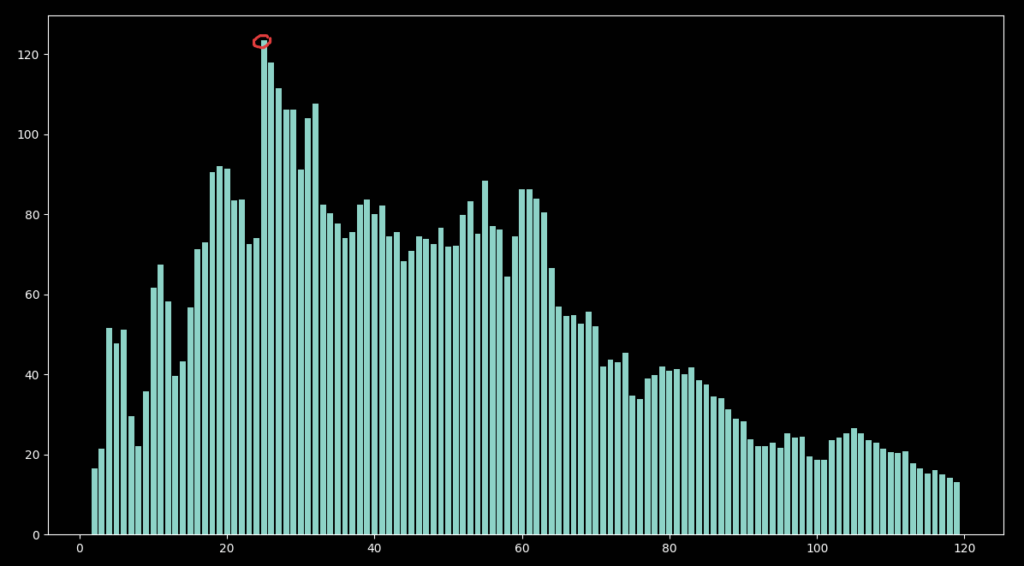 接下来,我们修改了主文件 main.py,使用 matplotlib.pyplot 中的 bar 函数绘制柱状图,横坐标表示不同的均线长度,纵坐标表示总收益率。