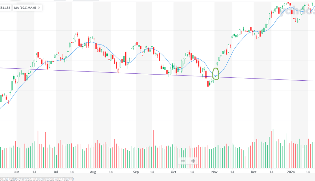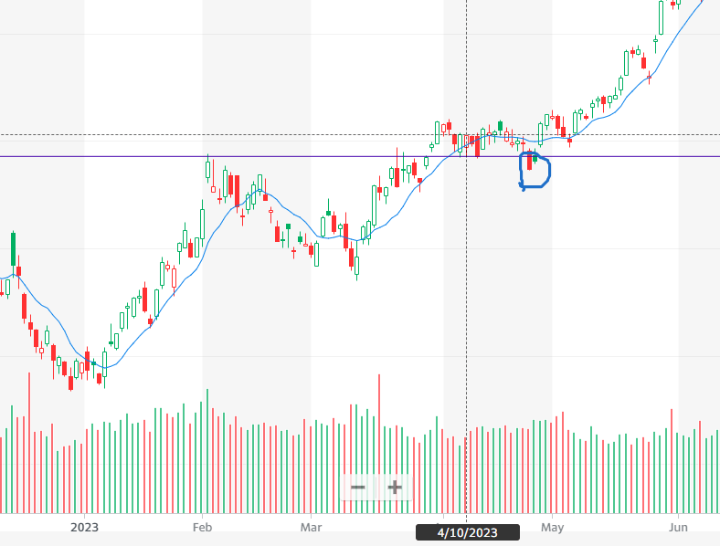 去年年初的时候有一个很经典的例子,2023年4月10号,美股做空规模达到11年新高,但是股价却一直处于横盘,并且在之后出现了假跌破又迅速拉回的情况。这也是我在4月的实盘视频中解释我当时果断满仓的原因。